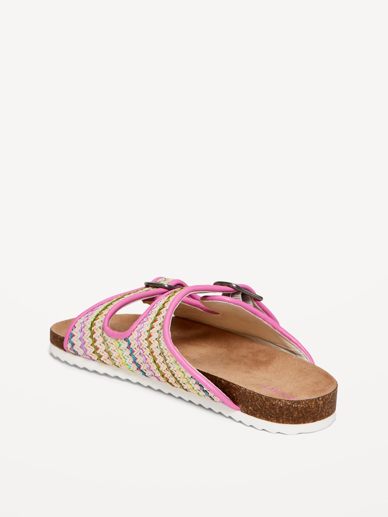 Textured-Woven Buckled Strap Sandals for Girls: double buckle straps, cushioned foot bed, faux-cork midsole, textured woven crochet-like pattern along straps, #693401