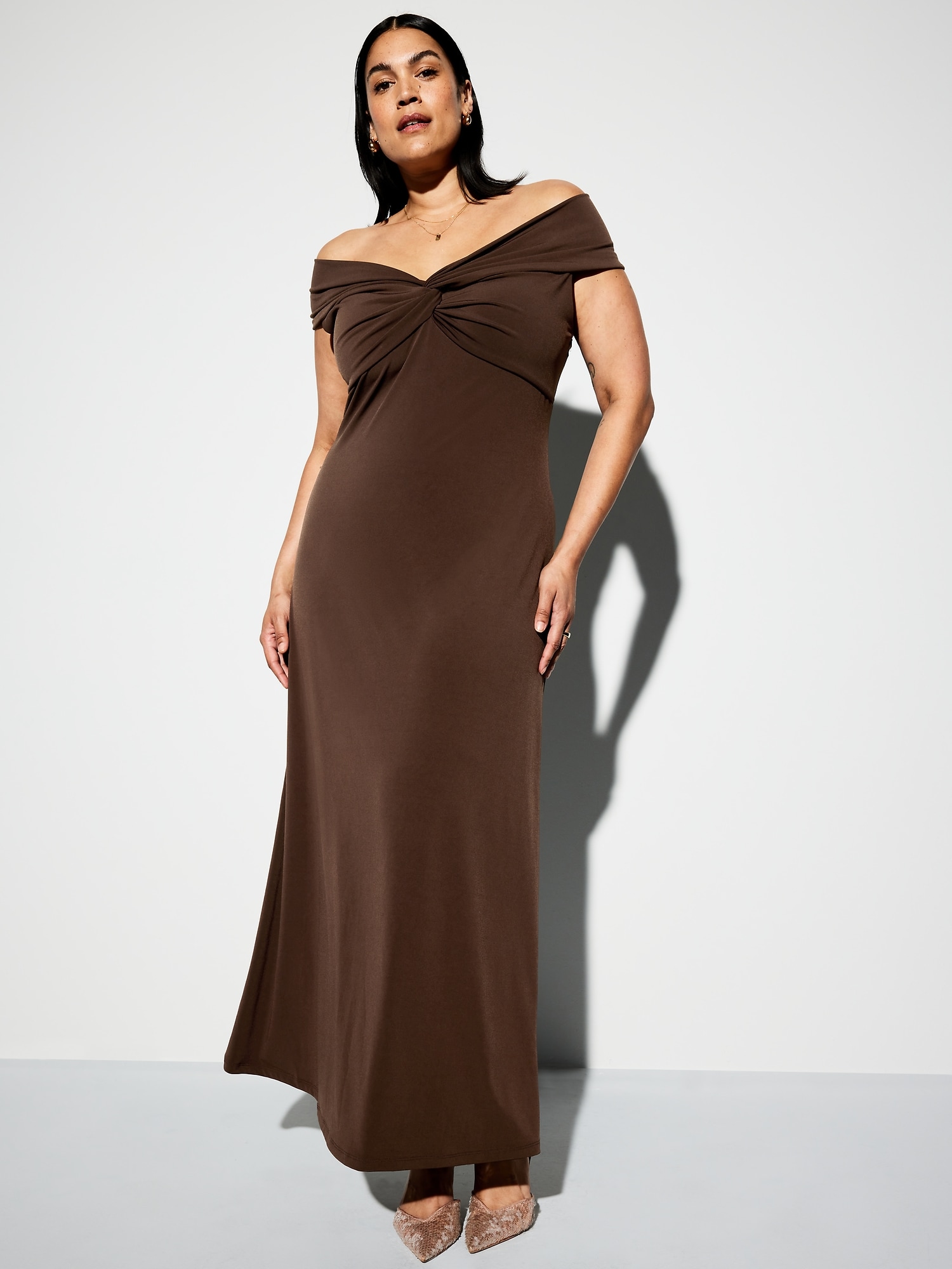 The Occasion by Old Navy Off-Shoulder Maxi Dress: New! Special dresses and sets, made to make an entrance.off-shoulder neckline, twist-front accent, flared maxi skirt, for parties, proms, graduations, weddings — these looks love an RSVP, #767458