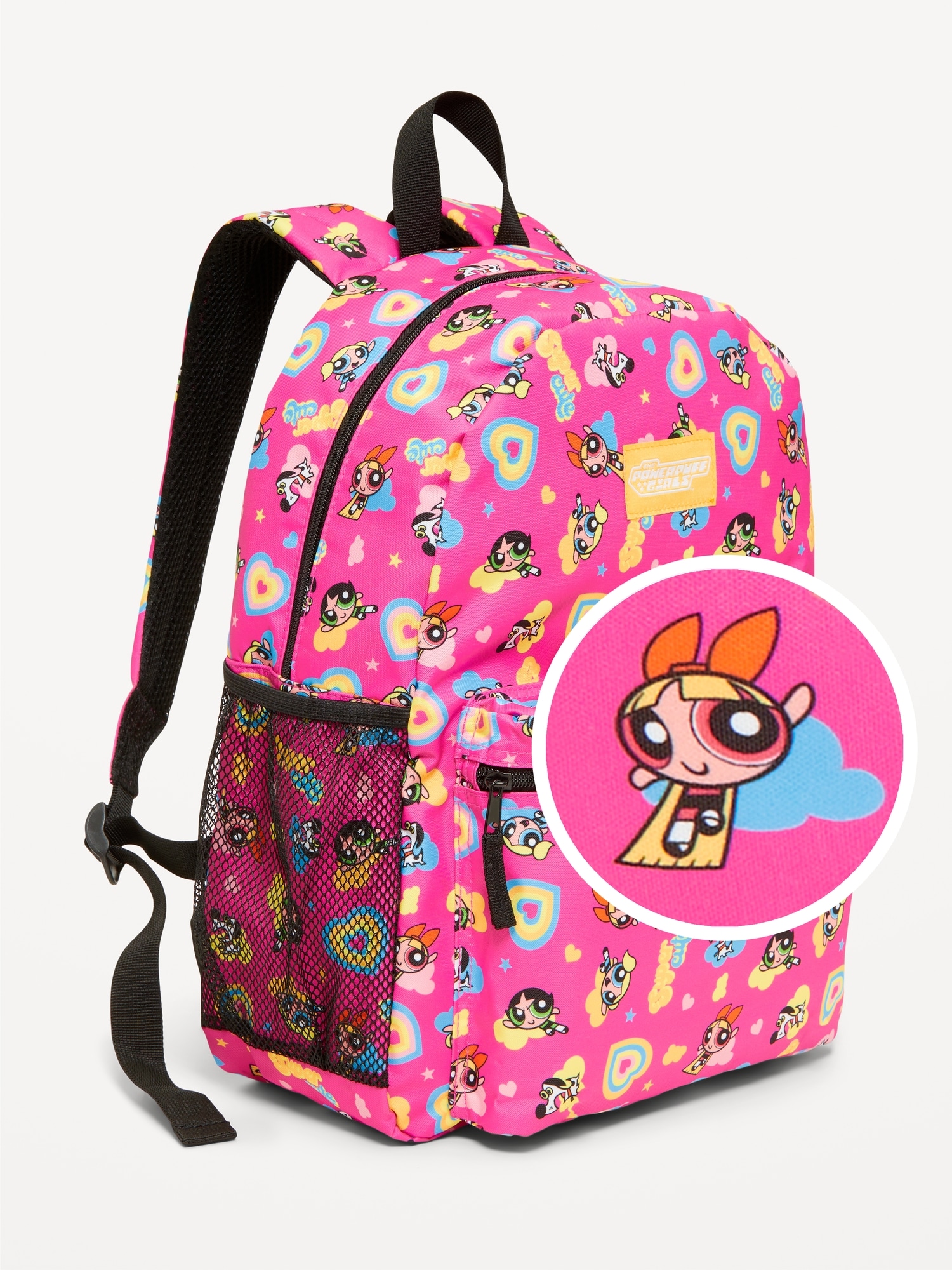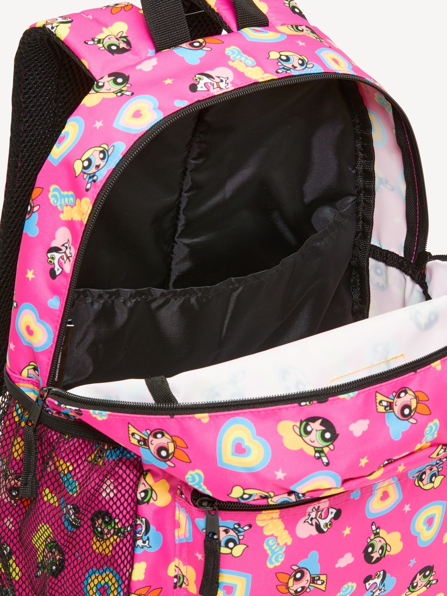 The Powerpuff Girls™ Canvas Backpack for Girls: The pack that’s got their literal back.zip-top closure, canvas handle, padded shoulder straps with adjustable buckles, padded mesh back for added comfort and breathability, exterior zippered pouch compartment, durable stretchy mesh side pouch, smooth interior with interior mesh pocket, Cartoon Network™ and © 2025. All rights reserved., #762501