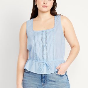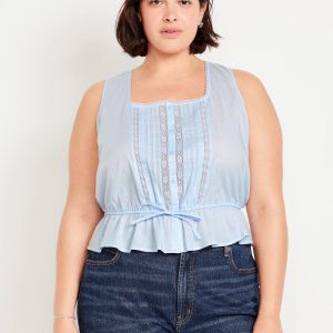 Tie-Waist Lace-Trim Top