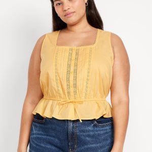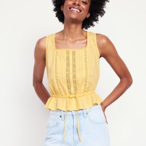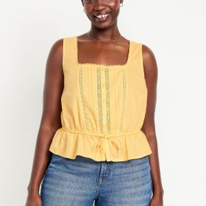 Tie-Waist Lace-Trim Top