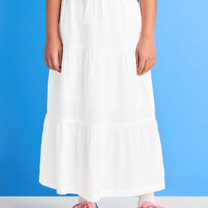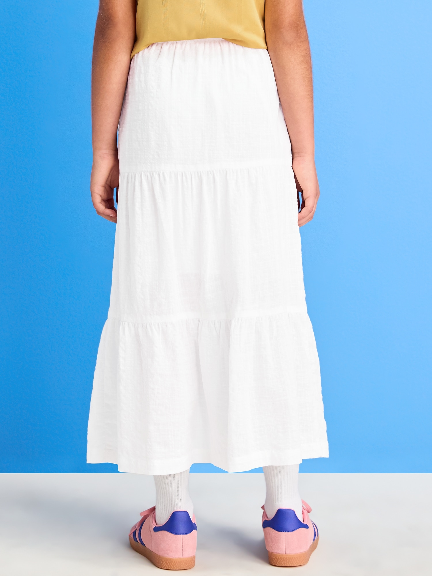 Tiered Swing Midi Skirt for Girls: elasticized waistband, functional drawstring, tiered, on-seam side pockets, all-over print in select colors, #690950