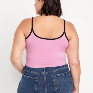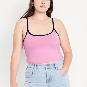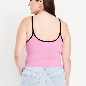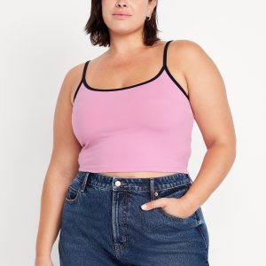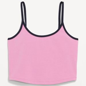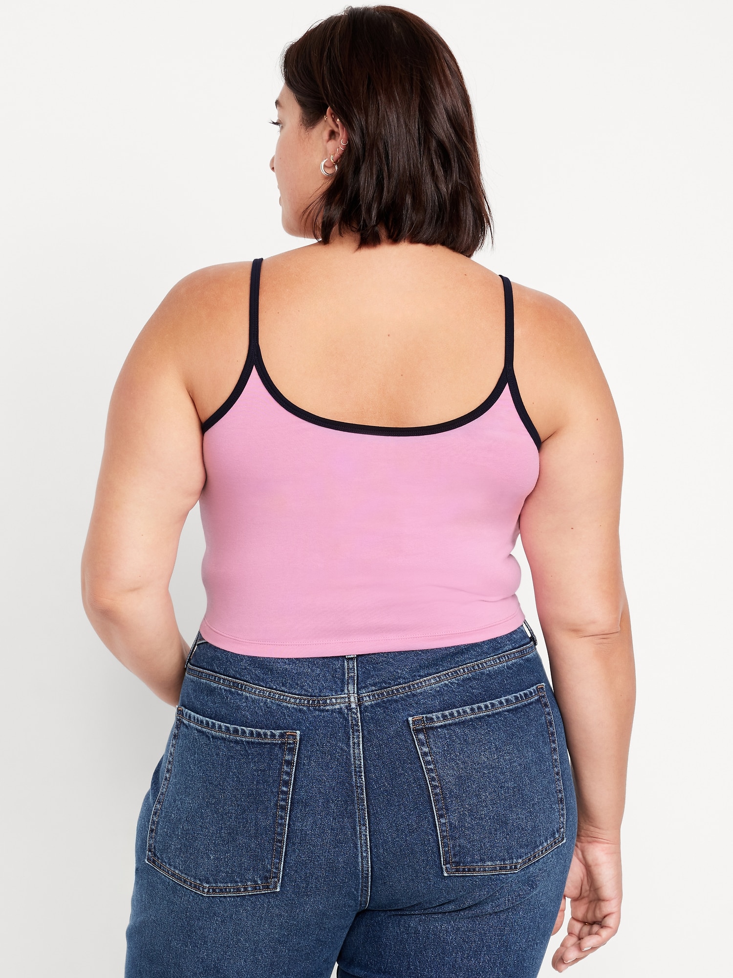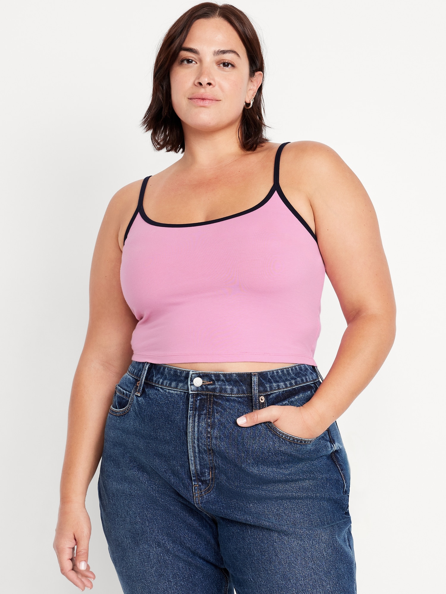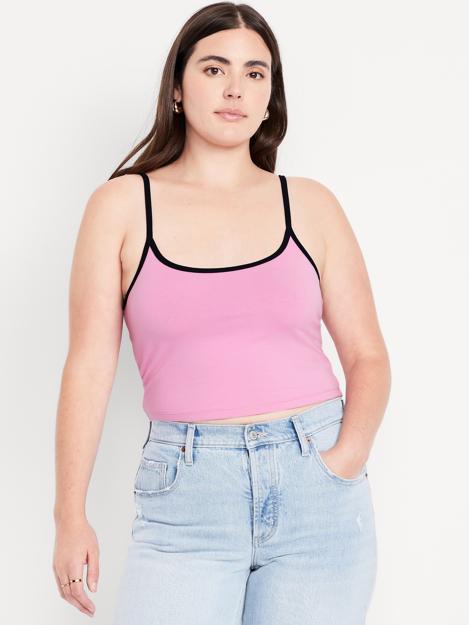 Tipped Jersey Cropped Brami Top: scoop neck, spaghetti straps, tipped trim, #844564