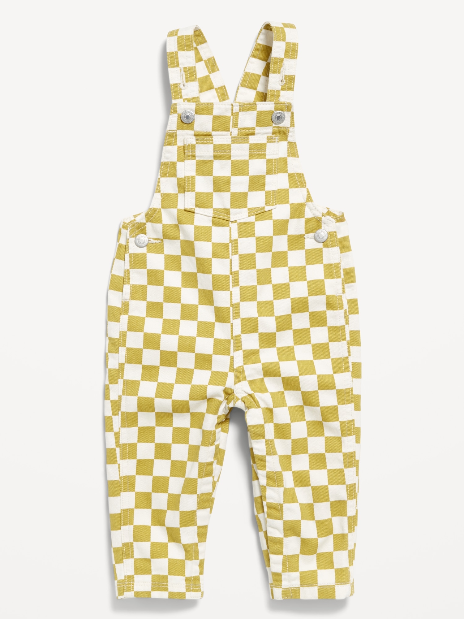 Twill Overalls for Baby: adjustable shoulder straps, patch pocket, snap-button closures at sides, diagonal pockets at front, patch pockets at back, all-over pattern in select colors, #804452