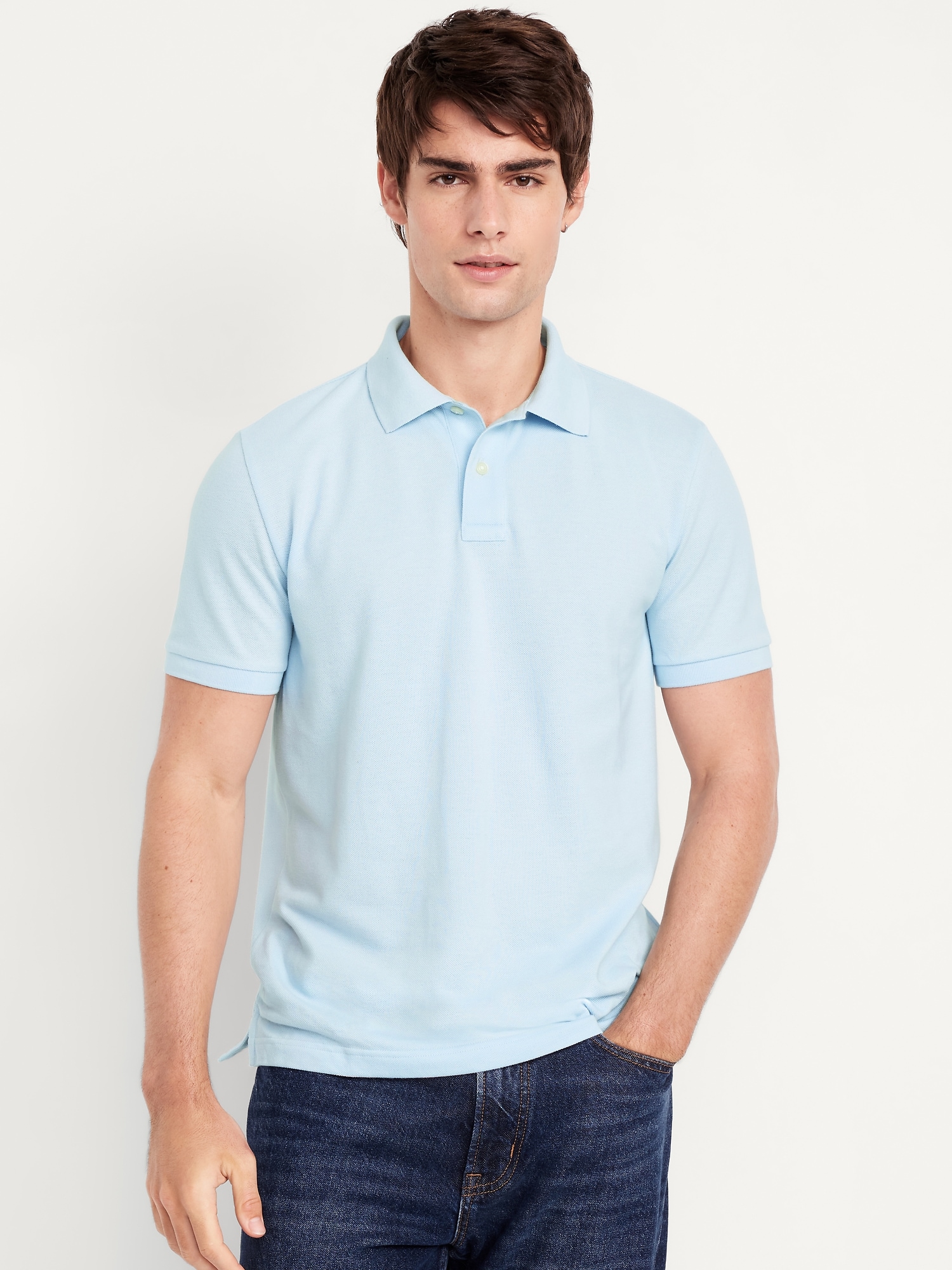 Uniform Pique Polo: New, updated fabric & fit., Rib-knit collar and short-sleeve openings., Two-button placket., Straight hem, with vented sides., Soft, medium-weight cotton pique., Tag-free for added comfort., #939350