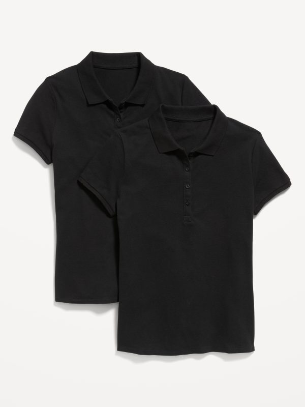 Uniform Pique Polo 2-Pack: pack includes 2 solid polos, spread rib-knit collar, short sleeves, four-button placket, drop-tail hem with vented sides, #654322