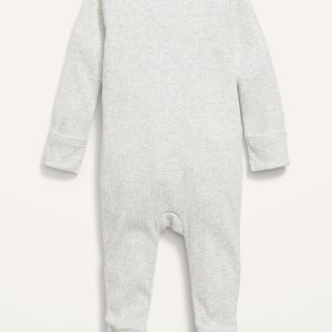 Unisex 3-Pack Sleep & Play 2-Way-Zip Footed One-Piece for Baby: Online exclusive!, Pack includes 3 footed sleep & play one-pieces for baby, each in a different color, print or pattern., These one-pieces are totally adorable & unisex, too. Wearable & shareable for him, for her, for them., Rib-knit crew neck, with zipper-guard tab at neck., Long sleeves., Fold-over mittens at each sleeve flip over to keep baby’s hands warm and protect tender skin from scratches. Genius!, Full-length one-way zipper down center front & along left inseam for easy dressing and diaper changing., Where’s the 2-way zipper? We know you love it (we love it too)! Unfortunately, supply chain snafus have made these hard to get. We hope to update this 1-way zipper to 2-way as soon as possible ??, Sewn-in feet., Soft-washed fine-gauge rib-knit cotton., #804367