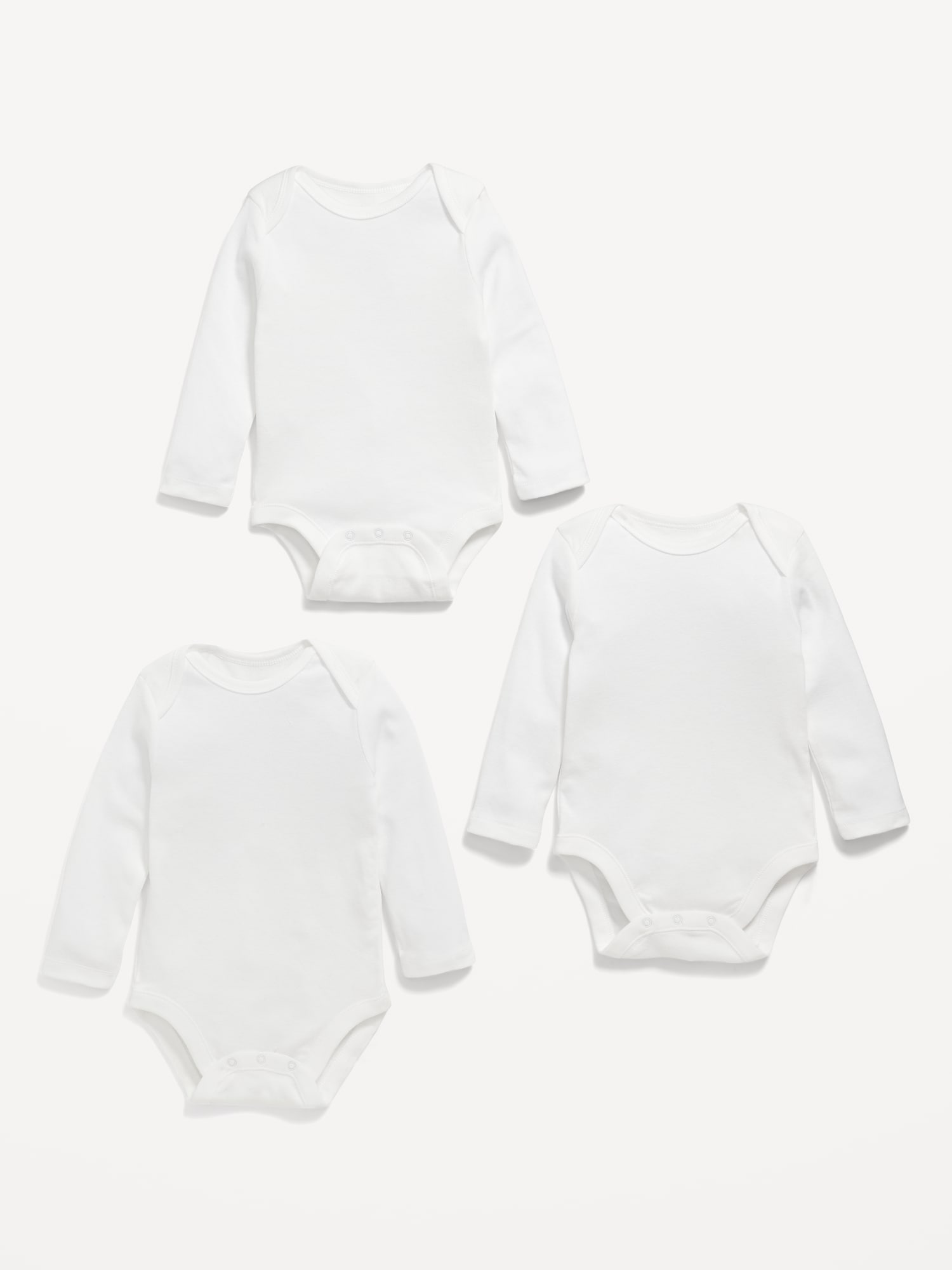 Unisex Bodysuit 3-Pack for Baby: envelope neckline, long sleeves, ring-snaps along the rib-knit inseam, online exclusive, #868816