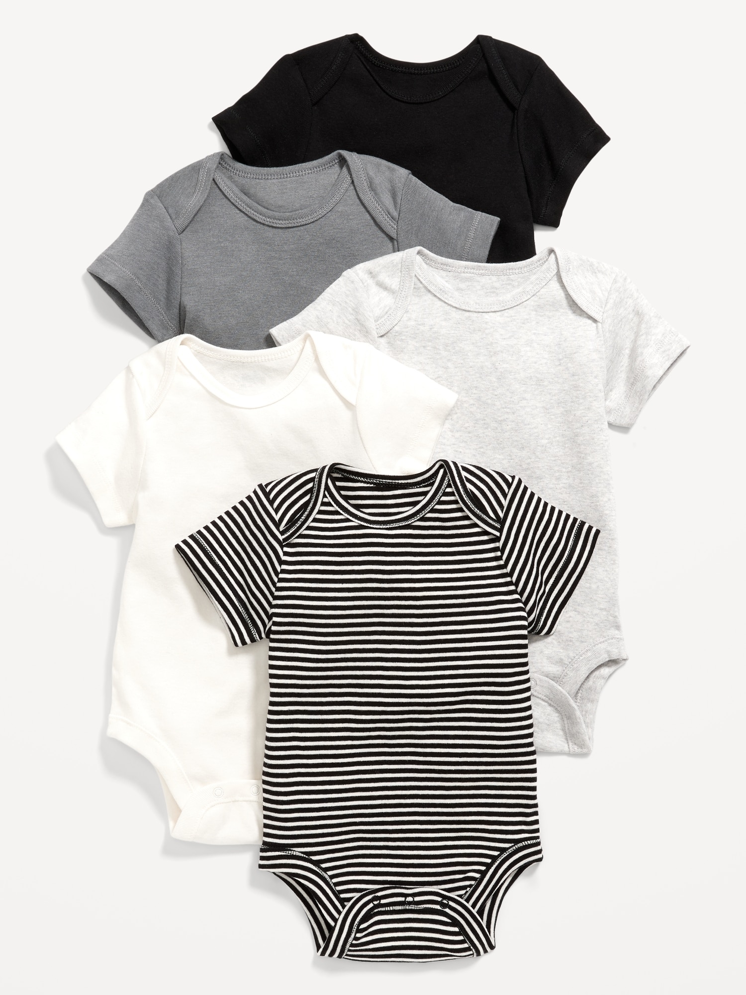 Unisex Short-Sleeve Bodysuit 5-Pack for Baby: envelope neckline, short sleeves, snaps along inseam, online exclusive, #688224