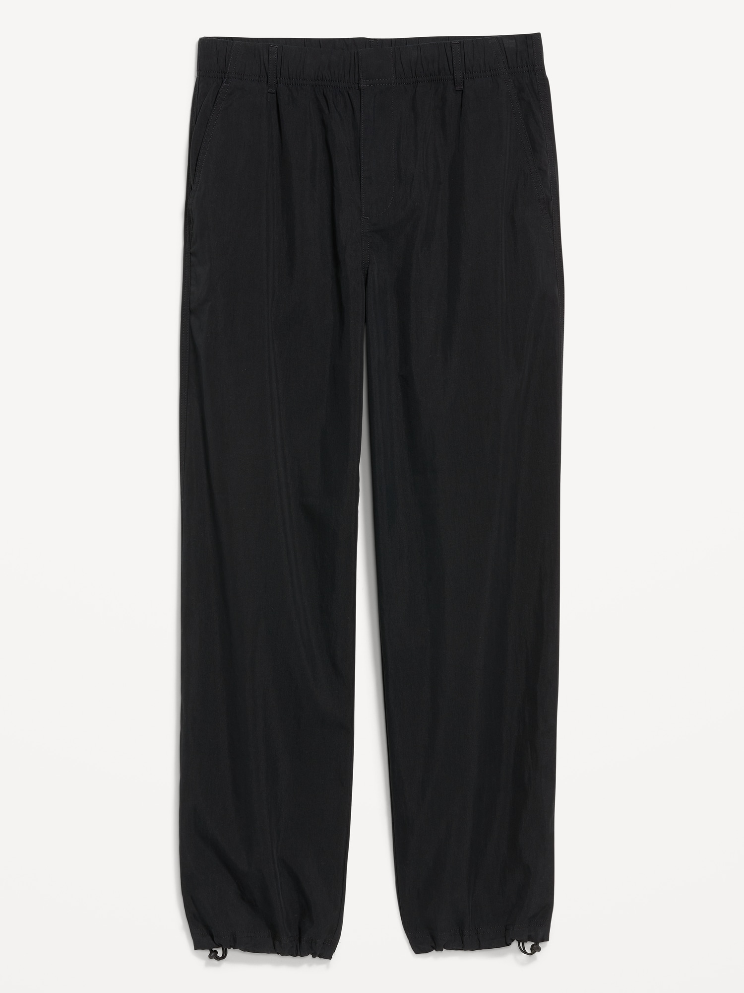 Vintage Baggy Parachute Pants: elastic-drawstring waistband, snap front, zip fly, diagonal front pockets, back welt pockets with hidden snaps, cinched drawcord hem, #784250