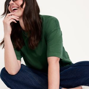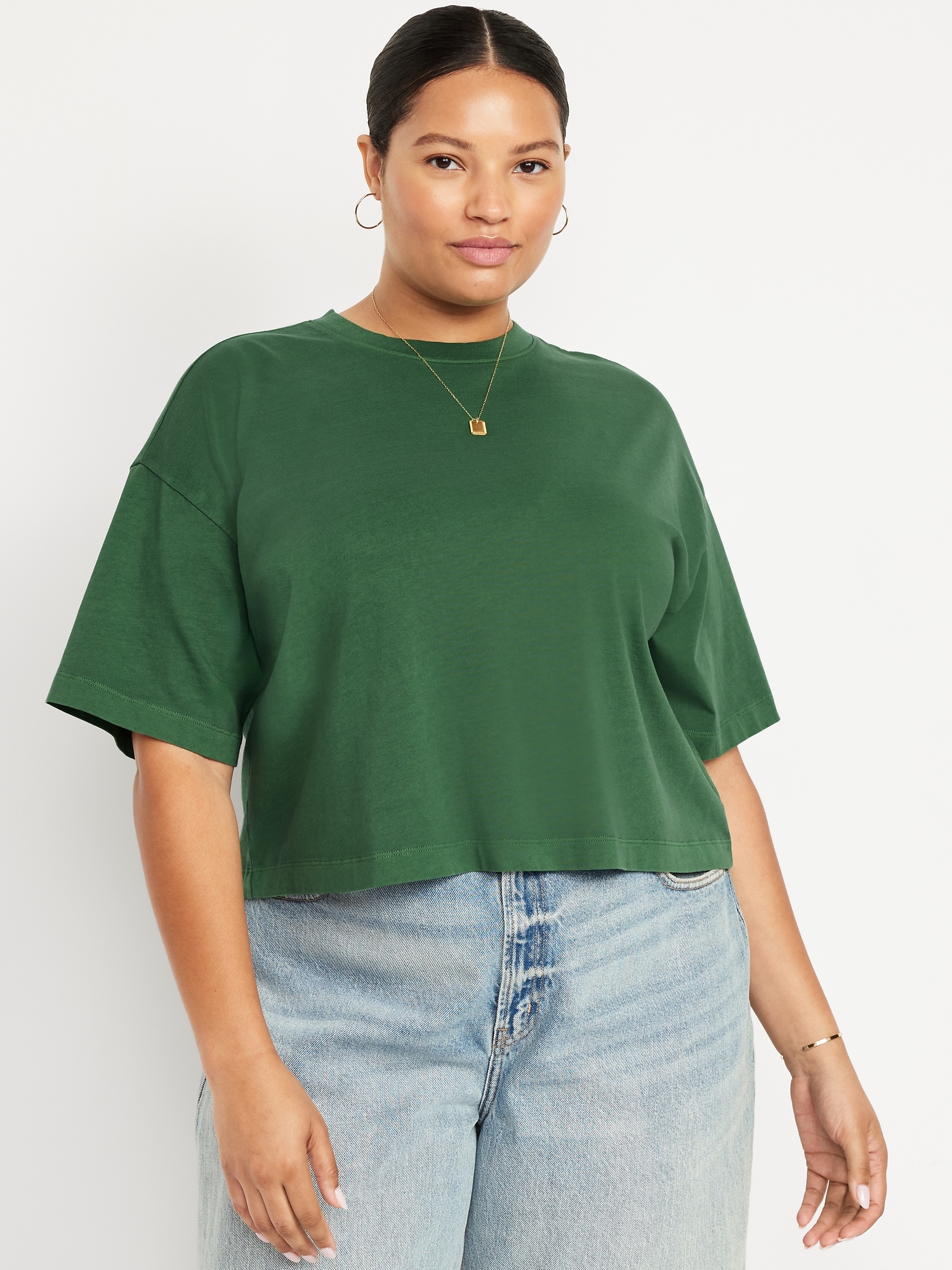 Vintage Crew-Neck Cropped T-Shirt: A super relaxed fit with lived-in feels.rib-knit crew neck, elbow-length sleeves, #804817