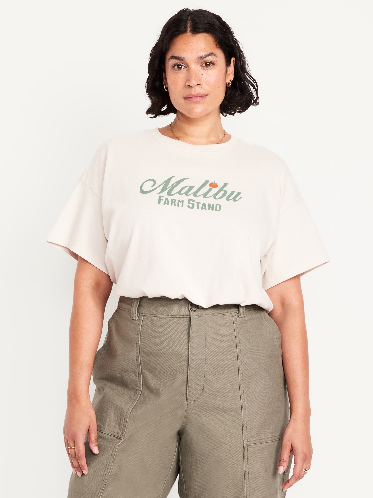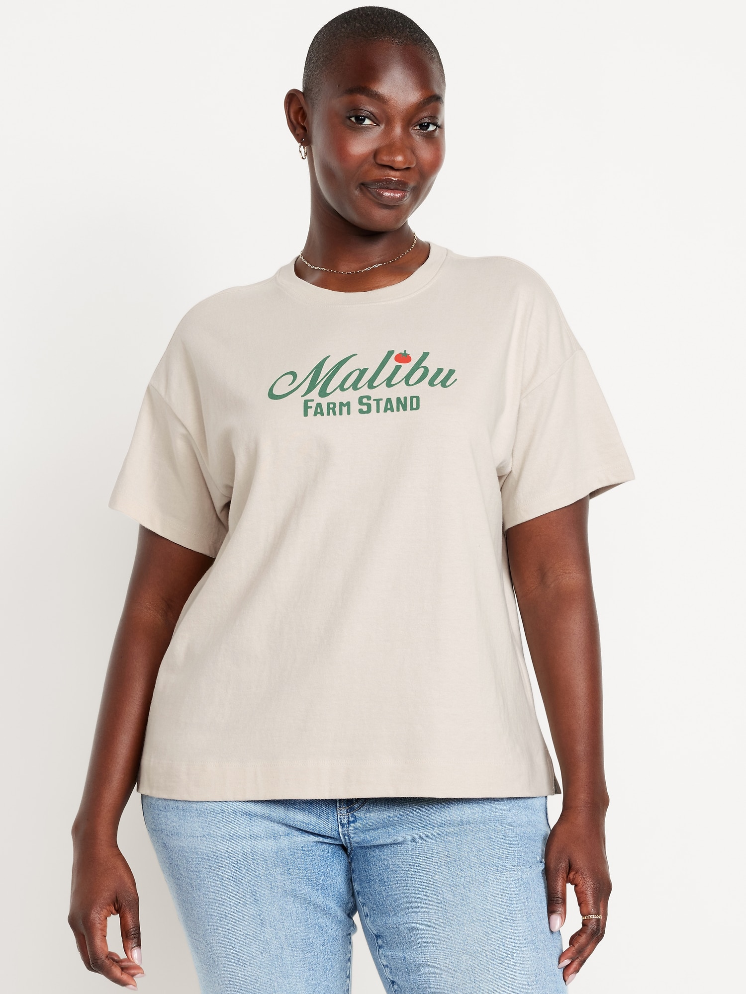 Vintage Crew-Neck Graphic T-Shirt: A super relaxed fit with lived-in feels.rib-knit crew neck, short drop-shoulder sleeves, #537388