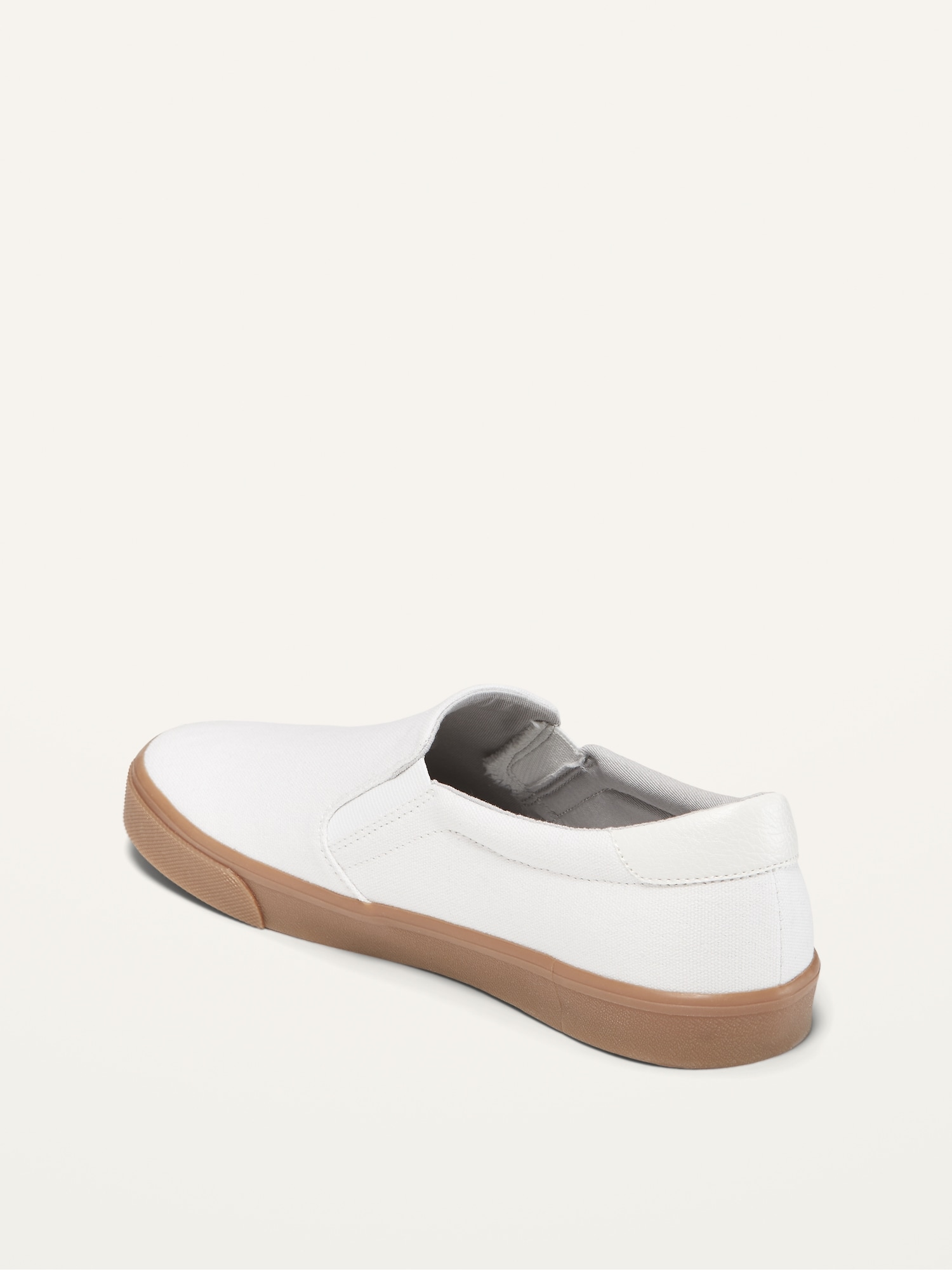 Water-Repellent Canvas Slip-On Sneakers: Soft, durable canvas upper, with webbed-elastic side goring., Cushioned insoles made with memory foam. Like walking on fluffy little clouds., Contrasting thermoplastic rubber midsole and textured outsole., These sneakers are water- and stain-repellent. Take that, rain and dirt., Easy slip-on style., #883622