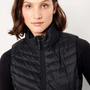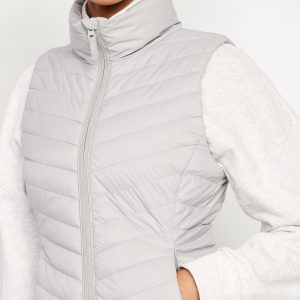 Water-Resistant Packable Puffer Vest: mock neck, full-zip front with zipper guard, on-seam pockets, taffeta lining, #784477