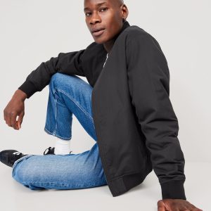 Water-Resistant Zip Bomber Jacket: rib-knit collar, long sleeves, rib-knit cuffs, full-length zipper, welt pockets, interior snap-welt pocket for wallet or phone, rib-knit hem, water resistant, #417247