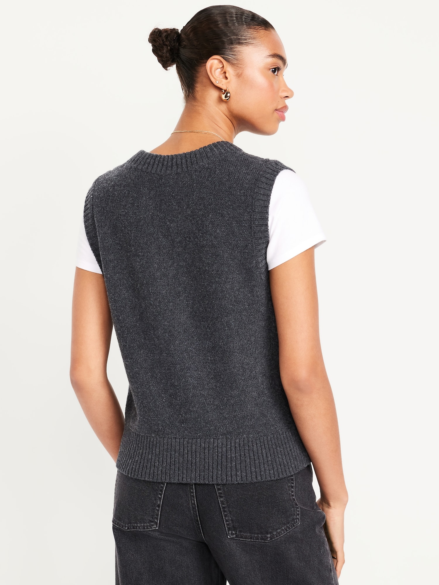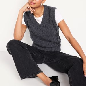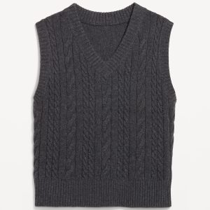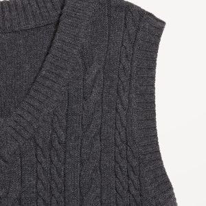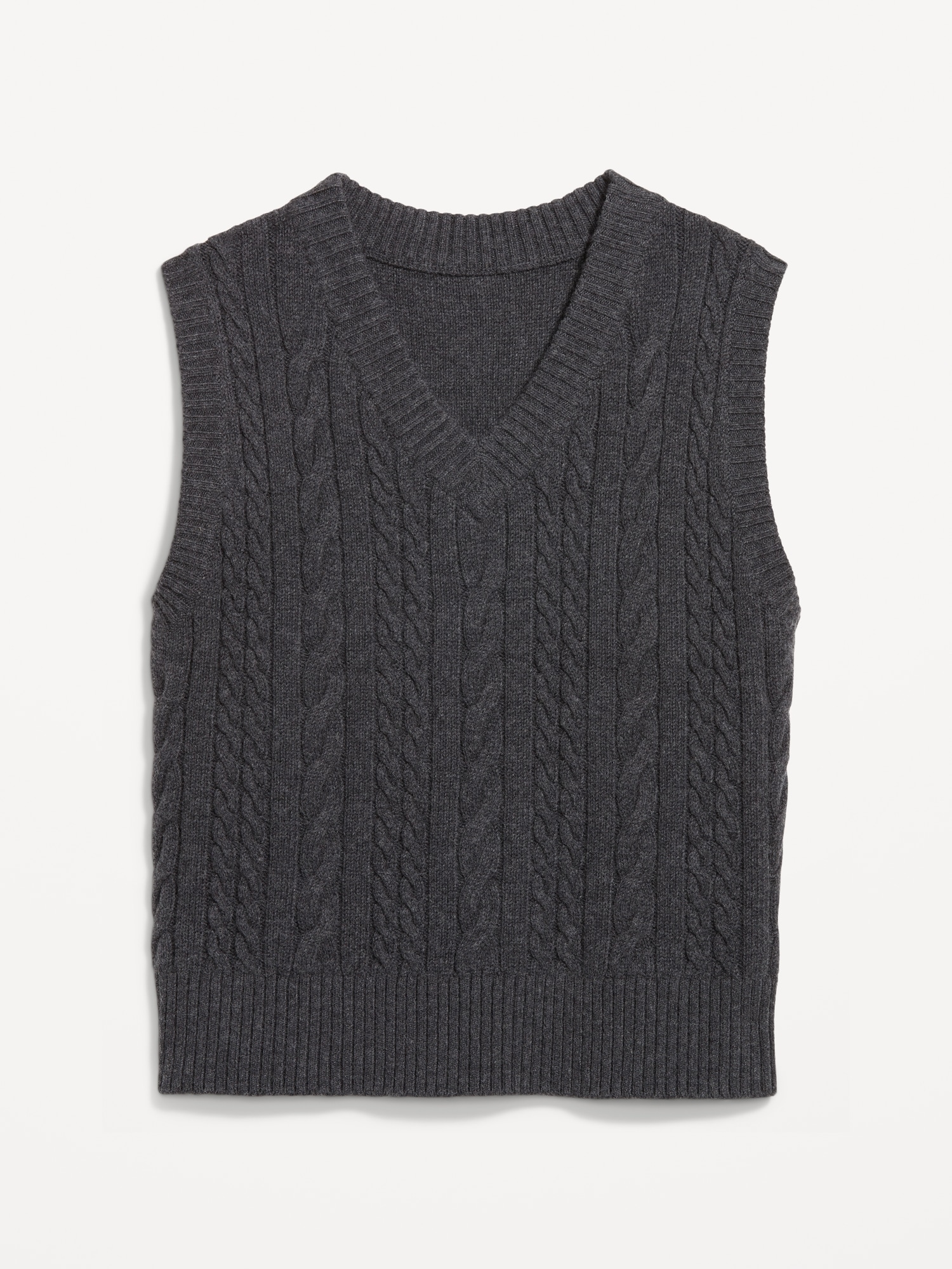 Wool-Blend Cable-Knit Vest: v-neck, cable-knit front, rib-knit trim, #785030