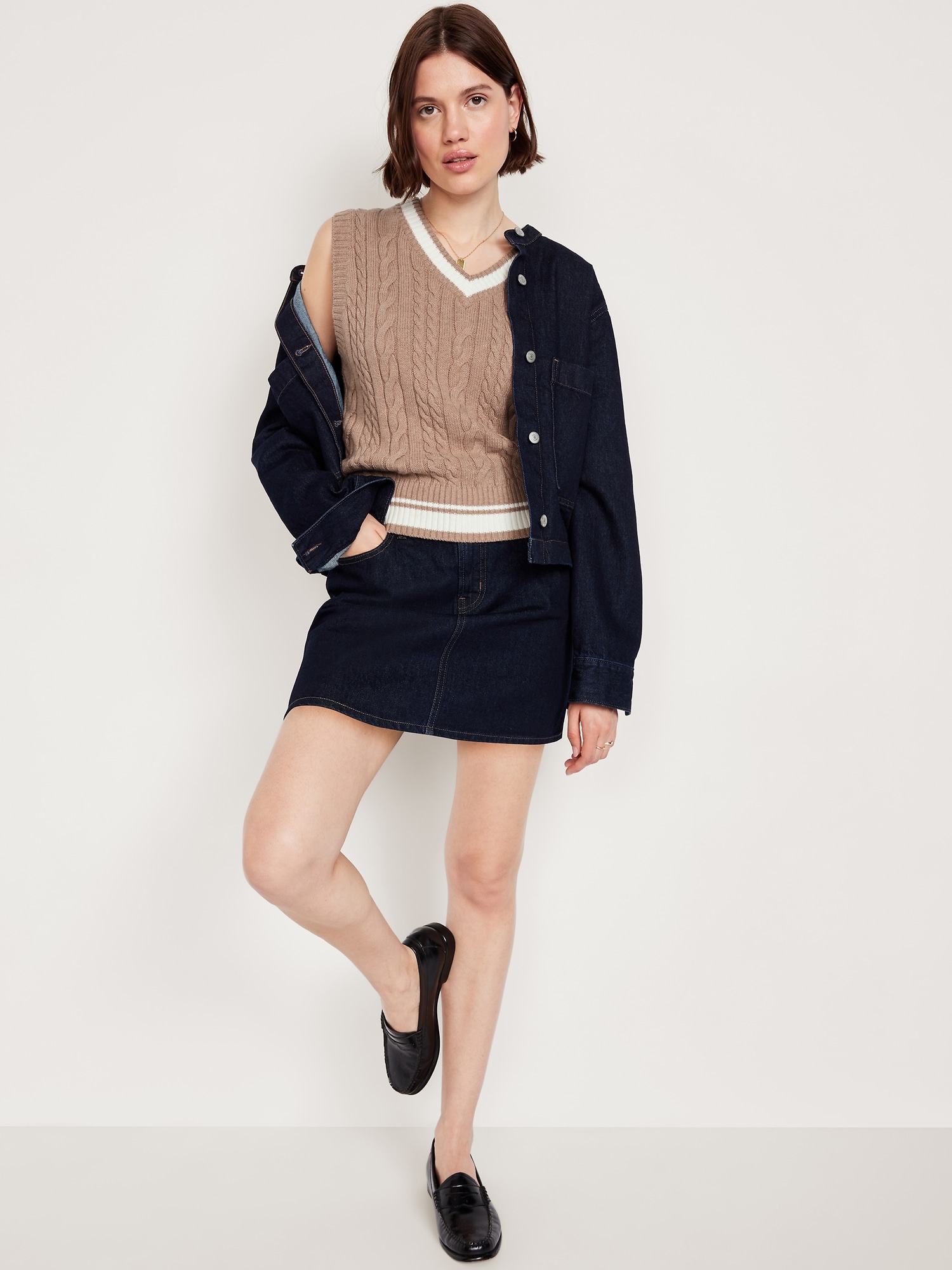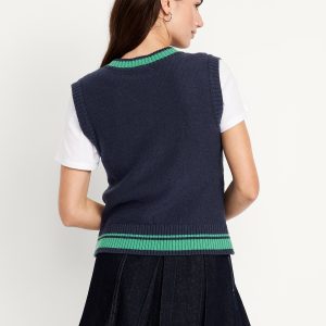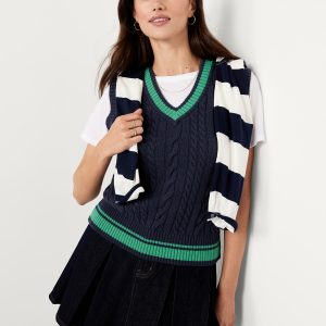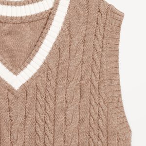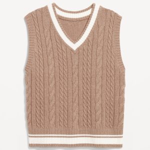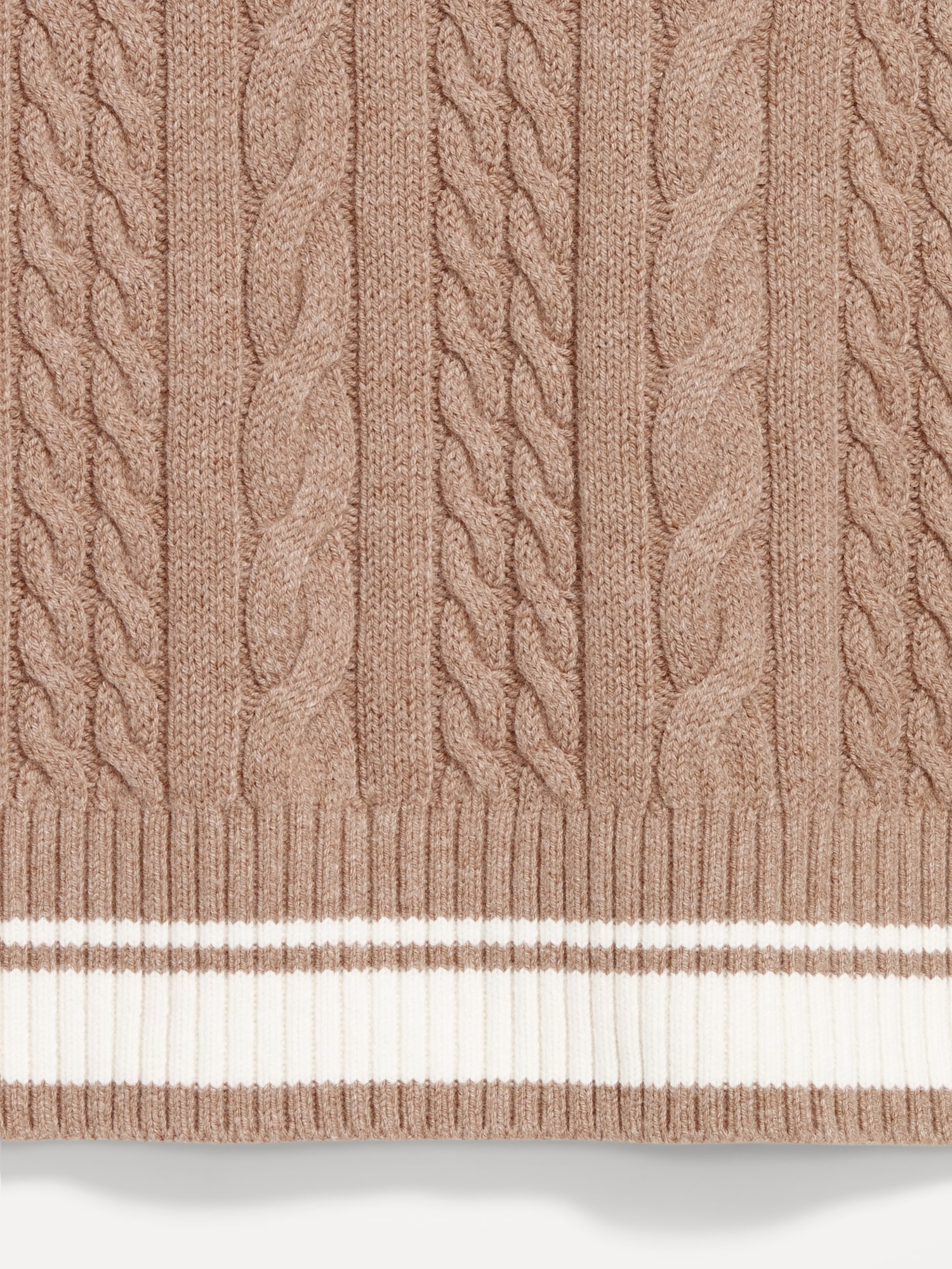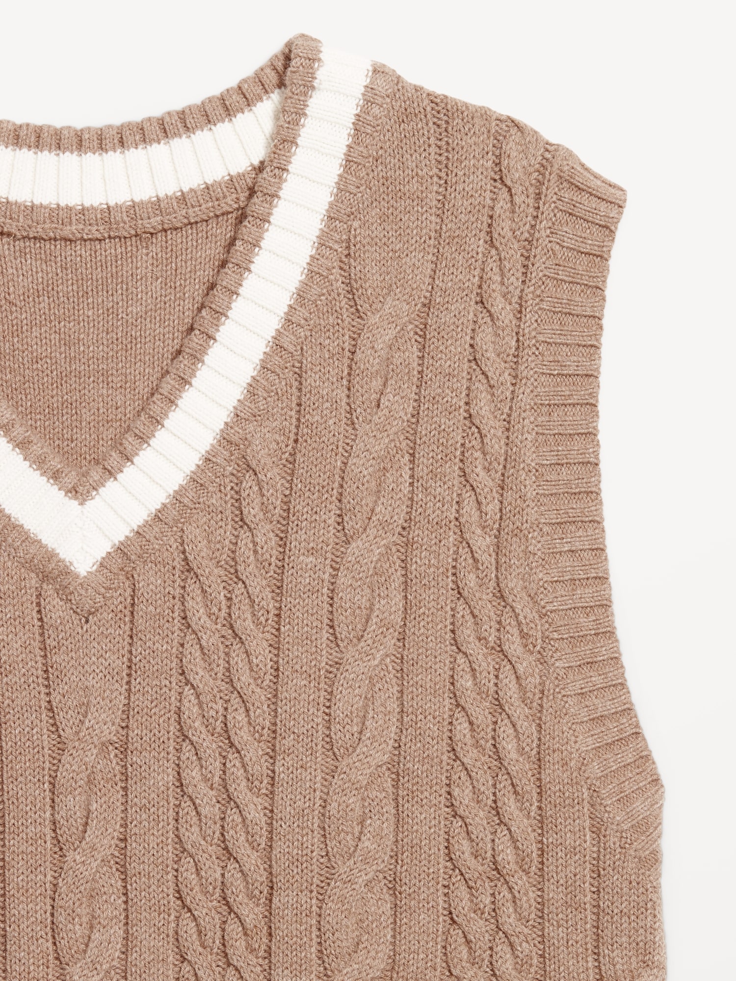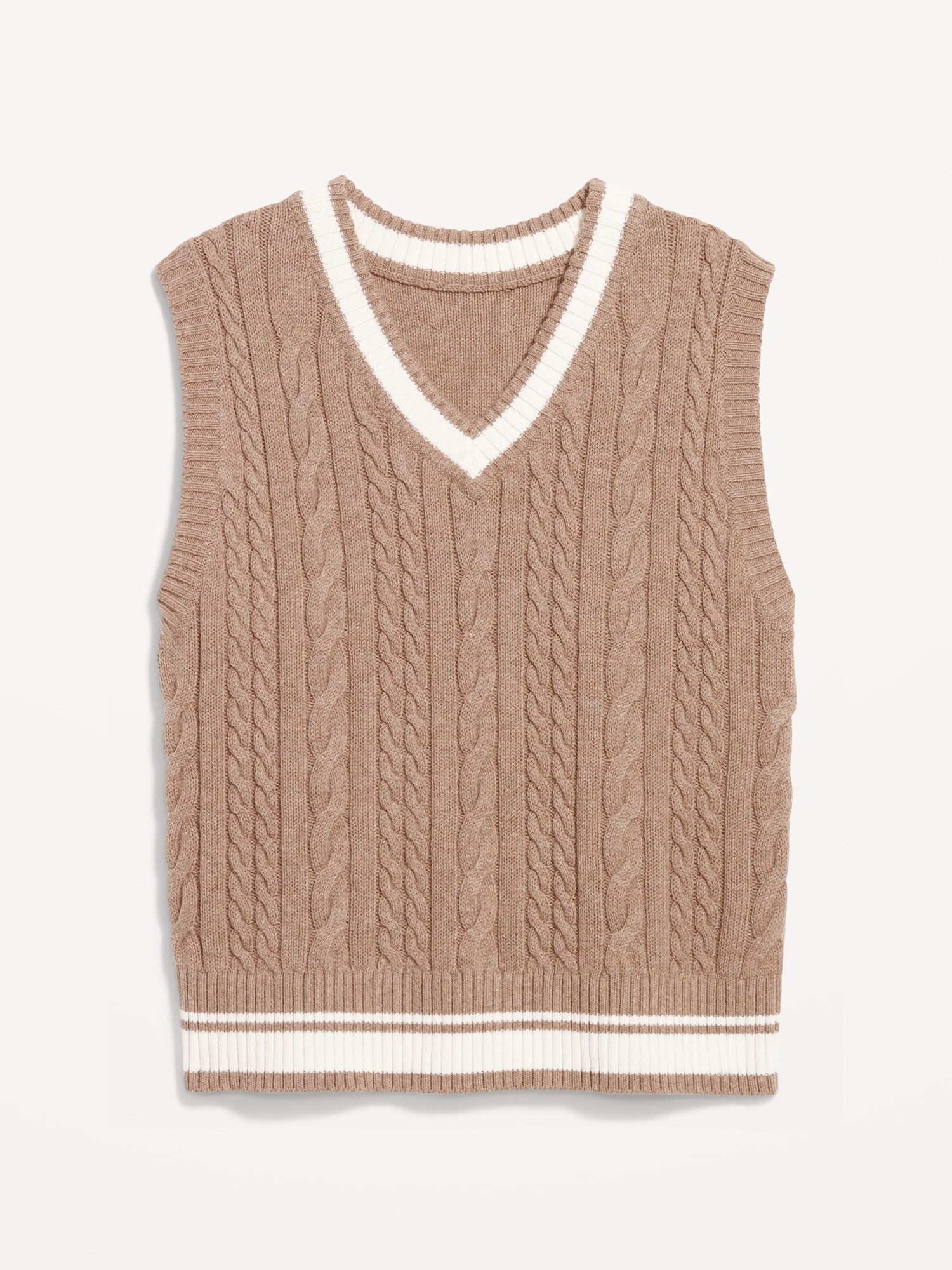 Wool-Blend Cable-Knit Vest: v-neck, cable-knit front, rib-knit trim, #785030