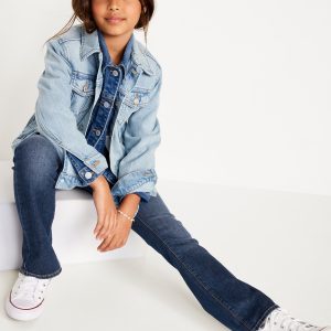Wow Boot-Cut Pull-On Jeans for Girls: interior adjustable waistband, elasticized pull-on waistband, faux fly, functional scoop pockets in front, patch pockets in back, #509368