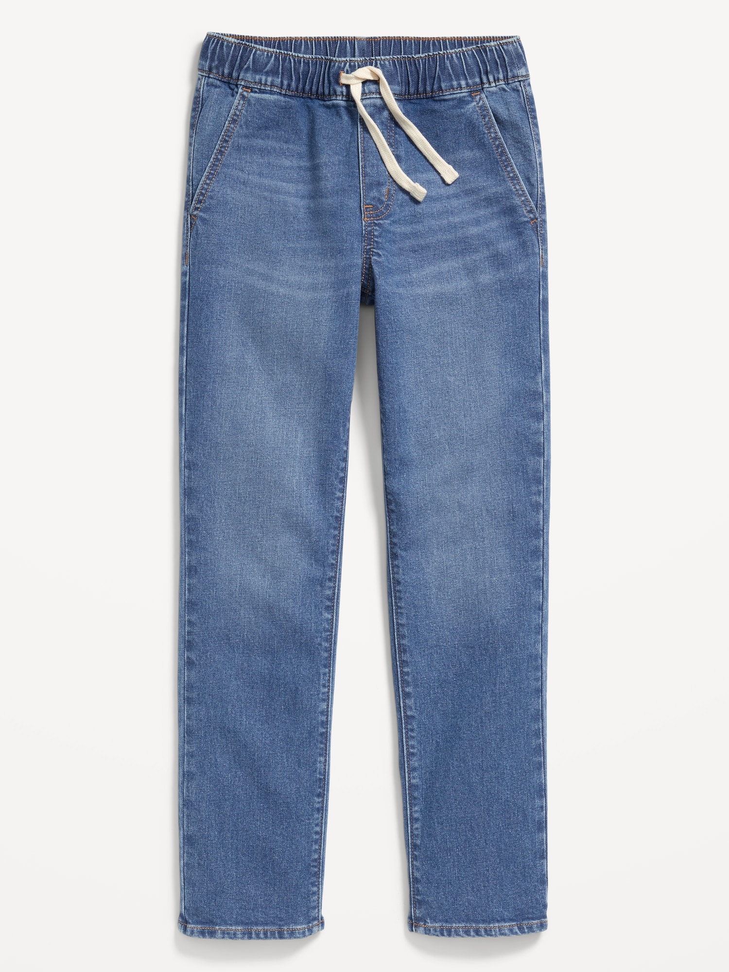 Wow Pull-On Straight Leg Jeans for Boys: Comfy, durable, wear-on-repeat faves.elasticized waistband, functional drawstring, diagonal on-seam pockets, patch pockets at back, #892310