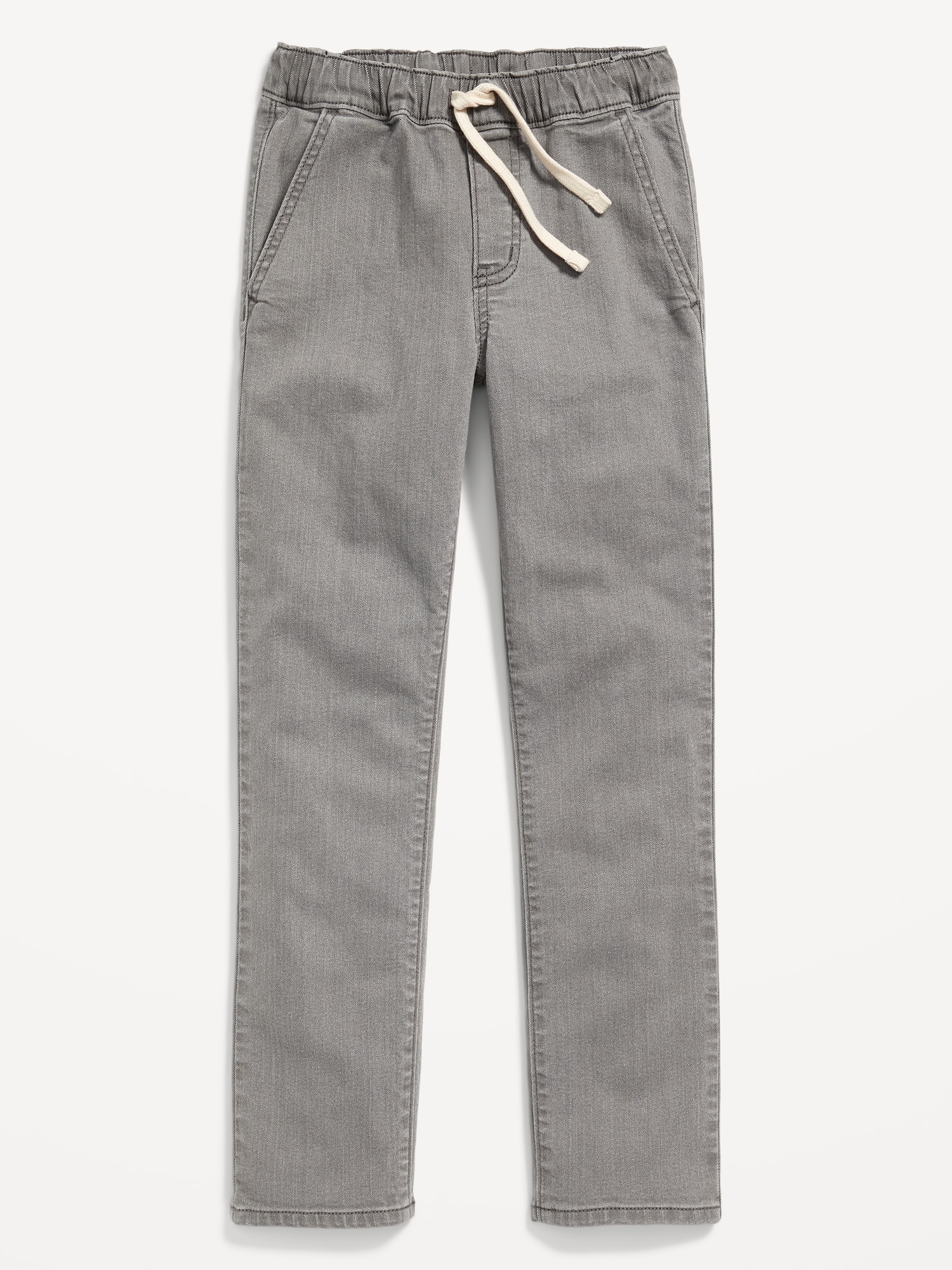 Wow Pull-On Straight Leg Jeans for Boys: Comfy, durable, wear-on-repeat faves.elasticized waistband, functional drawstring, diagonal on-seam pockets, patch pockets at back, #892310