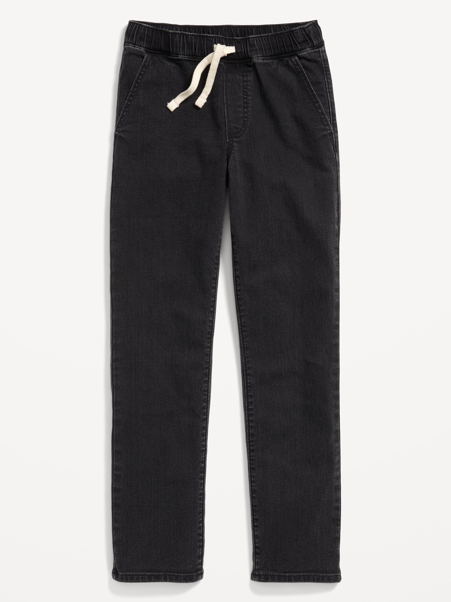 Wow Pull-On Straight Leg Jeans for Boys: Comfy, durable, wear-on-repeat faves.elasticized waistband, functional drawstring, diagonal on-seam pockets, patch pockets at back, #892310