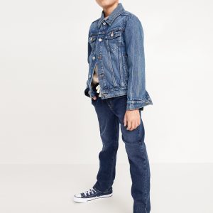 Wow Pull-On Straight Leg Jeans for Boys: Comfy, durable, wear-on-repeat faves.elasticized waistband, functional drawstring, diagonal on-seam pockets, patch pockets at back, #892310