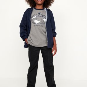 WOW Straight Leg Pull On Pants for Boys: elastic-drawstring waist, faux fly, diagonal front pockets, single back patch pocket, easy pull-on style, #848239