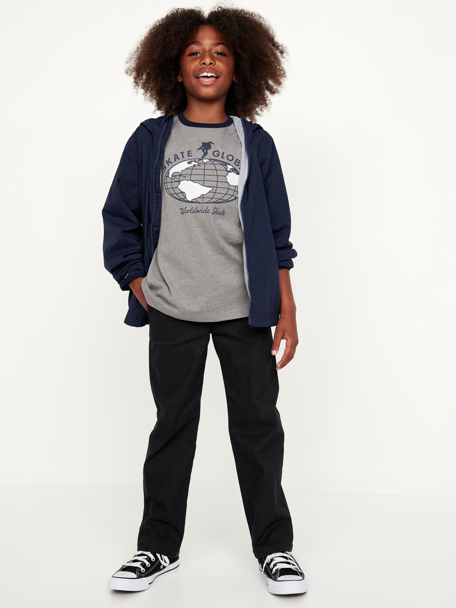 WOW Straight Leg Pull On Pants for Boys: elastic-drawstring waist, faux fly, diagonal front pockets, single back patch pocket, easy pull-on style, #848239